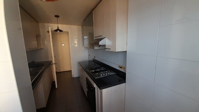 - Cocina amoblada y equipada; con encimera a gas, campana y horno eléctrico.