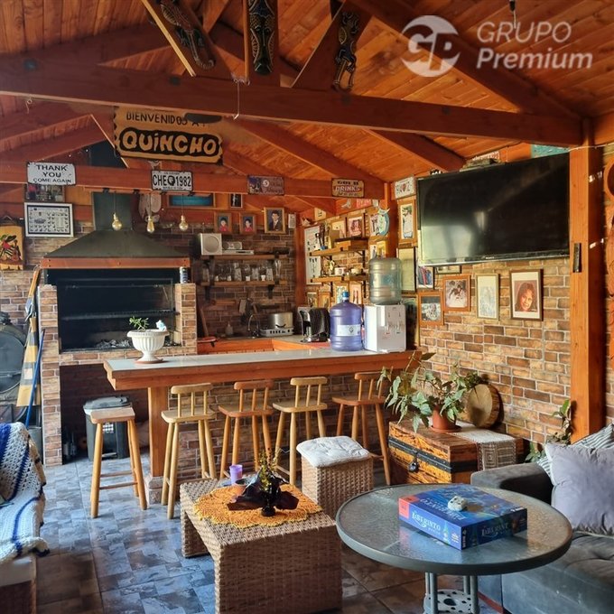 Logia, terraza y hermoso quincho, todo con cobertizo de madera y pisos ceramicos.