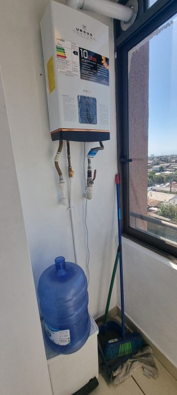 Posee calefon y tiene espacio para instalar lavadora.