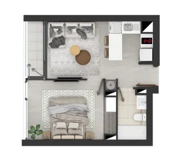 termo eléctrico), balcón (con acceso a Living y dormitorio) y cocina americana