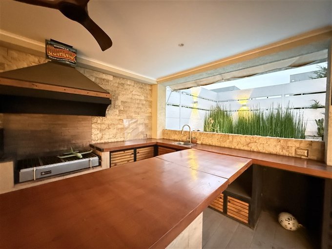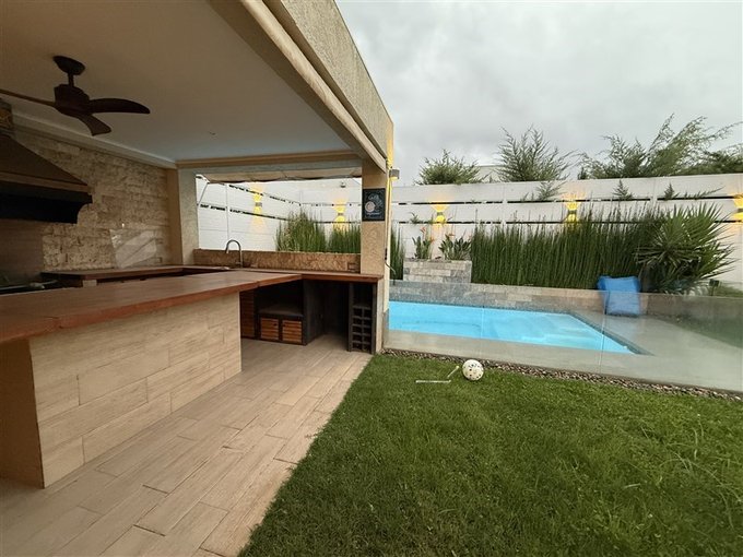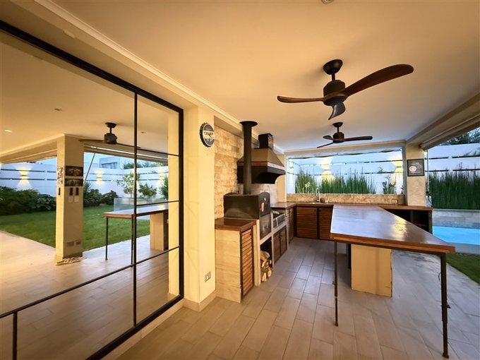Emplazada al interior de condominio, con control de acceso, guardias y portería, la casa tiene una gran piscina con cascada y cierre de vidrio templado que le da elegancia, hermoso jardín con riego automático. Gran quincho con muebles, parrilla, lavacopas, isla y horno pizzero.