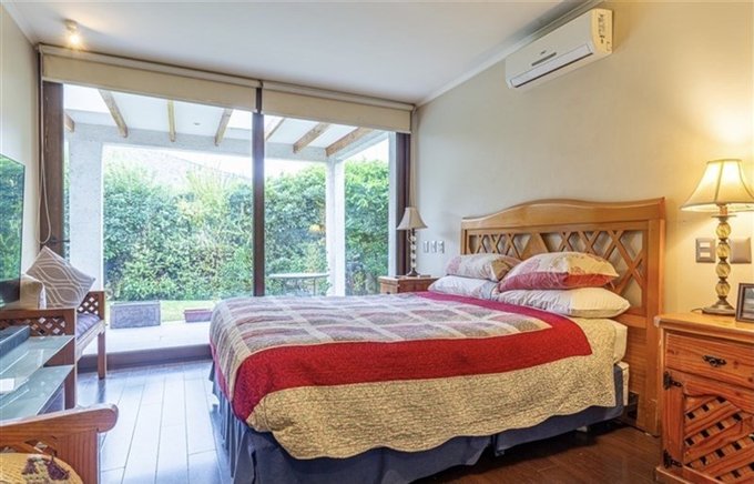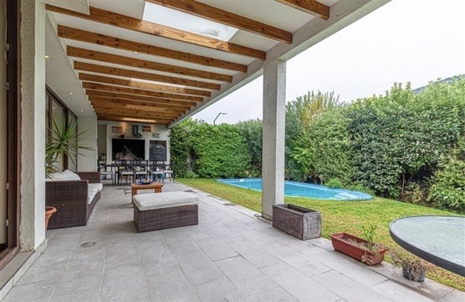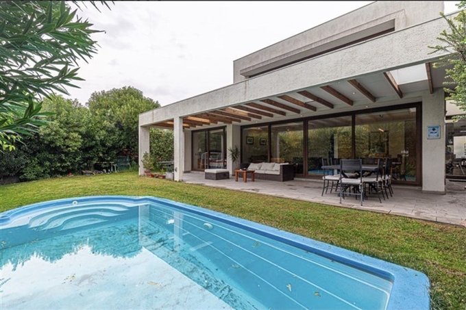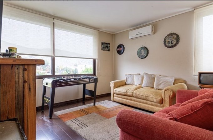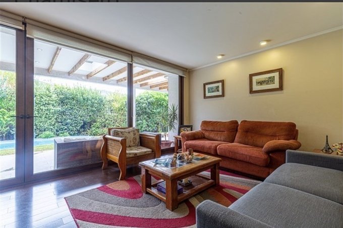 ID EXCELENTE CASA EN SECTOR CHAMISERO, en primer piso se encuentra Hall central, Living y comedor de muy buen tamaño con salida a terraza grande y techada, baño de visita, dormitorio principal en suite mas otro dormitorio, cocina amplia equipada con muebles, encimera y comedor de diario, loggia y dormitorio de servicio; en Segundo piso una linda sala de estar y dos dormitorios mas un baño completo, la casa tiene piscina, jardín formado, terraza techada y un quincho completo, además cuenta con paneles solares, ventanas termopanel y 3 estacionamientos, condominio con seguridad 24/7.