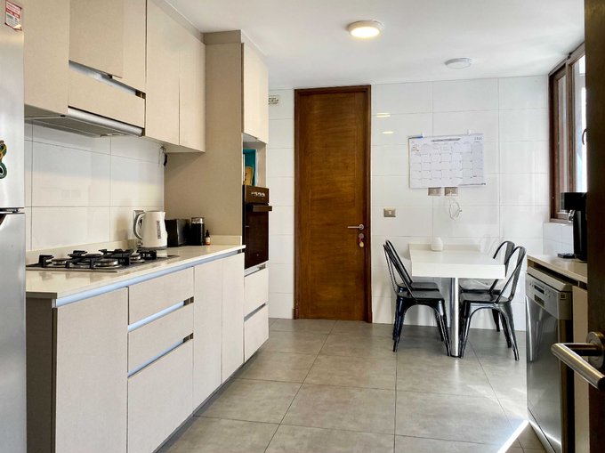 Cocina amplia, con encimera, horno y campana ; y con comedor de diario