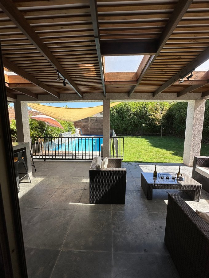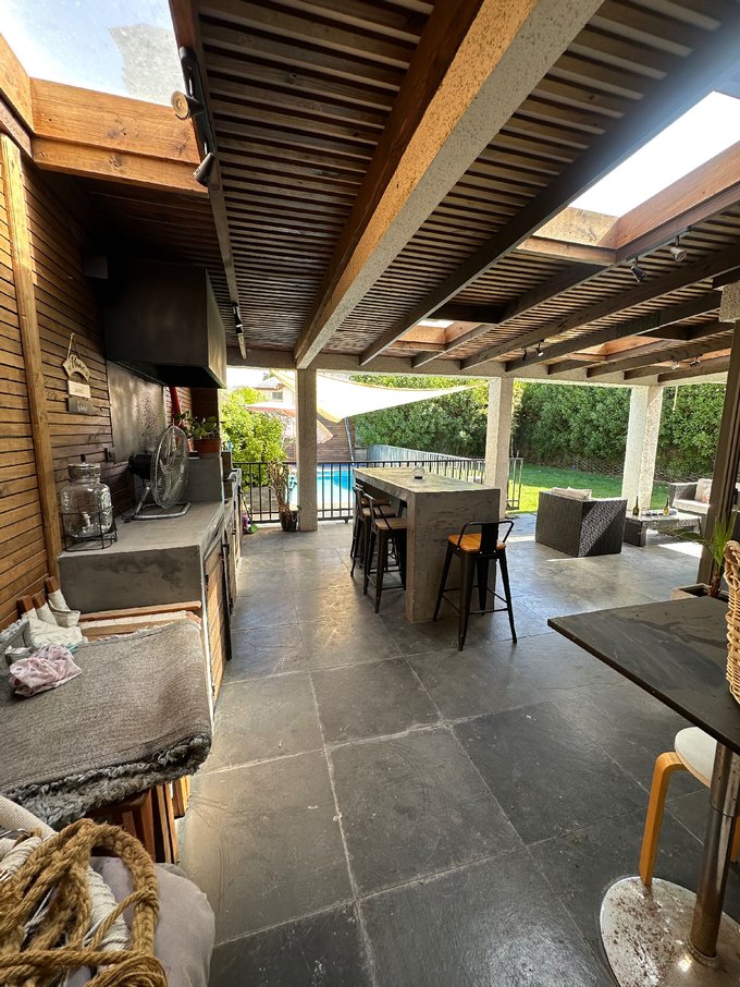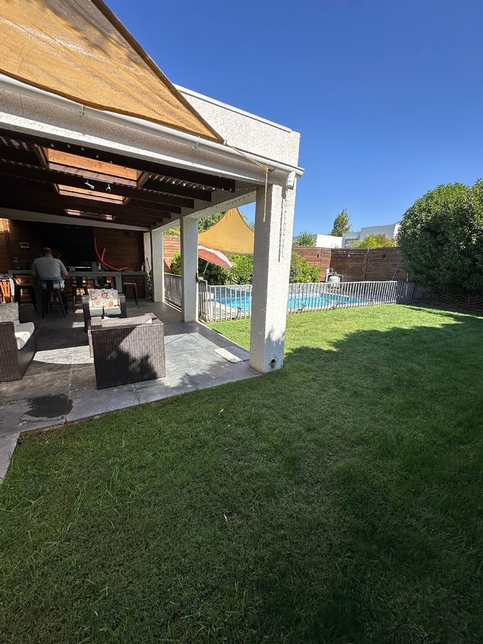 Hermoso jardin formado con riego automatico, amplia terraza techada con luz natural, quincho completamente equipado con isla, piscina con proteccion .