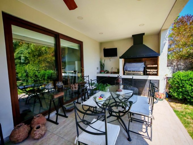 Exterior.- lindo jardín formado con riego automático, piscina con reja de máxima seguridad, deck . Gran terraza techada e iluminada con ventiladores, lindo quincho con campana, lavacopas.