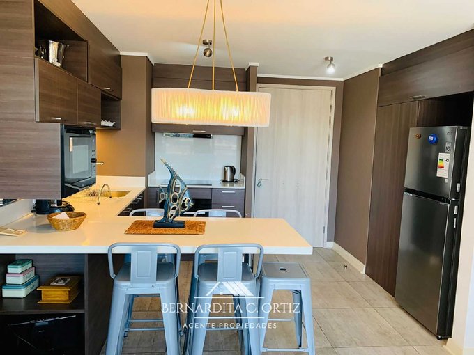 Bernardita Propiedades arrienda Depto año corrido Amoblado y full equipado. Situado en la prestigiosa zona de Costa de Montemar, Concón. Vive una experiencia de confort incomparable con sus dos elegantes dormitorios y dos baños bien equipados. Con terraza con vista parcial al mar.