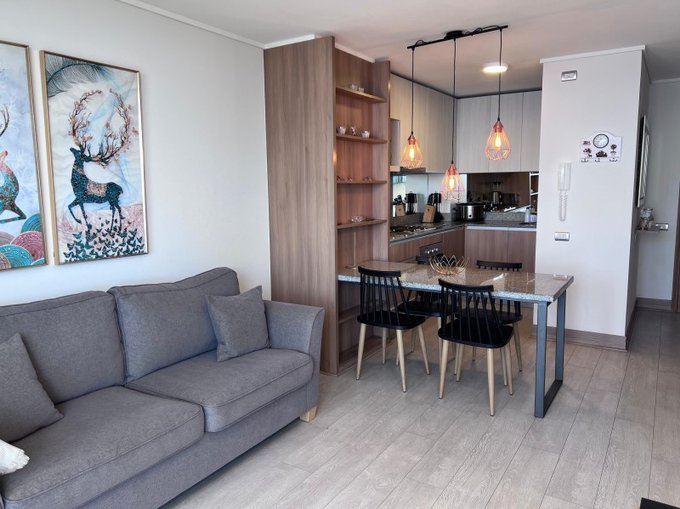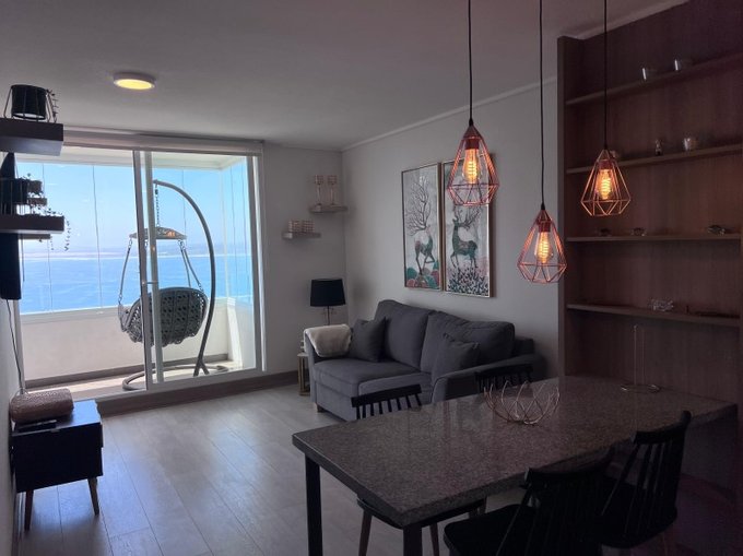 Se arrienda moderno departamento ubicado en Las Pimpinelas 1120, Edificio Altaír, piso 19, con espectacular vista panorámica al océano y amplia terraza para disfrutar atardeceres únicos.