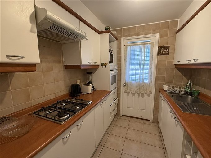 Cocina independiente amoblada y equipada con encimera y horno a gas, campana, refrigerador y completo equipamiento en loza, ollas y electrodomésticos para que puedas instalarte sin preocuparte por detalles.