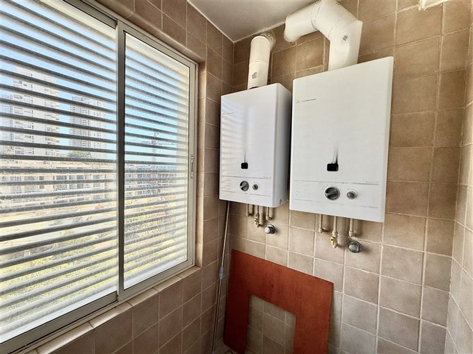 Logia exterior con dos calefantos y conexión para lavadora.