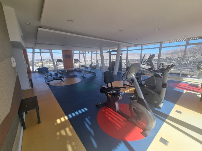 El edificio cuenta con piscina temperada, gimnasio, sauna, sala de cine, bar, quincho, lavandería, jugos infantiles, cámaras de seguridad, conserjería 24/7, control de acceso con tarjeta magnética.