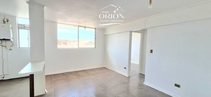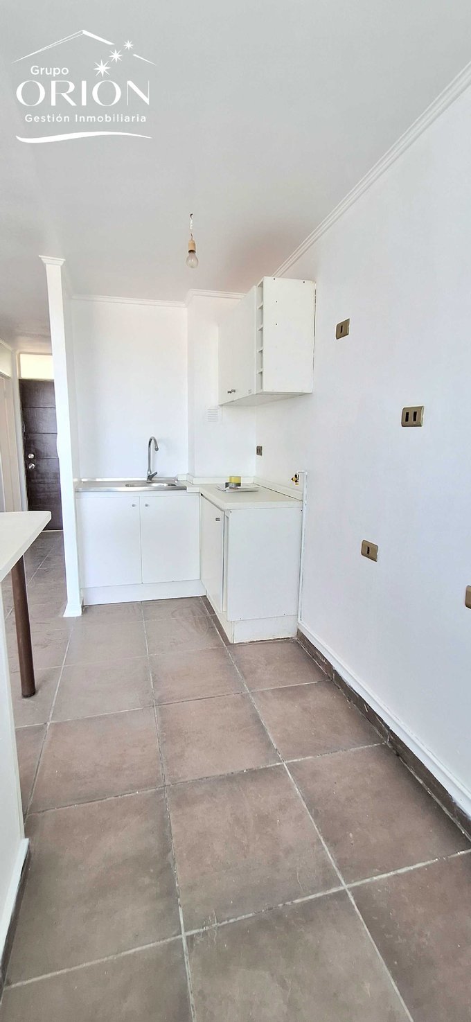 Grupo Orión Gestión Inmobiliaria, arrienda departamento, living comedor, cocina americana, 3 dormitorios, 1 baño, 1 estacionamiento, pisos cerámica, conexión para lavadora, primer piso.