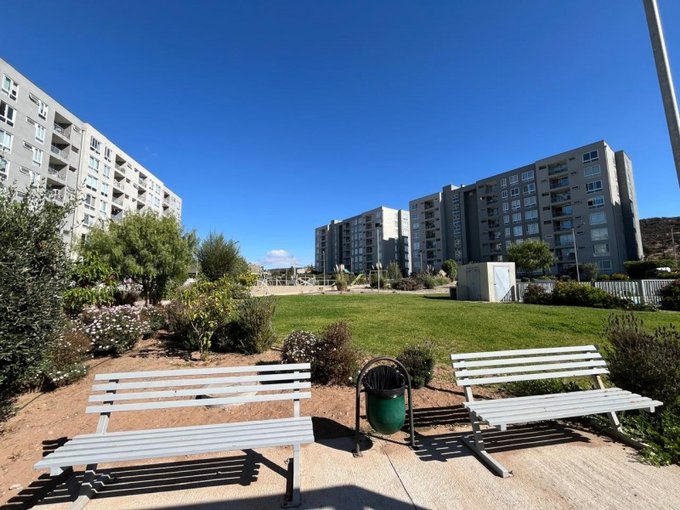 El condominio ofrece acceso controlado y seguridad 24/7, piscina, multicancha, espacios de ejercicios, juegos infantiles, 4 quinchos, sala multifuncional, bicicletero, jardines formados y estacionamientos de visitas. Se ubica cercano a supermercados, comercio, strip center y Ruta 5, lo que permite una excelente conectividad hacia distintos puntos de la ciudad