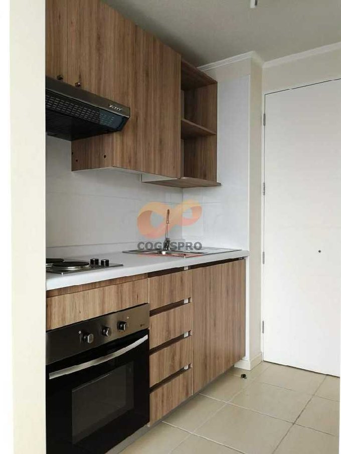- Cocina americana con muebles base y aéreo empotrados (cocina encimera de dos platos, horno eléctrico)
