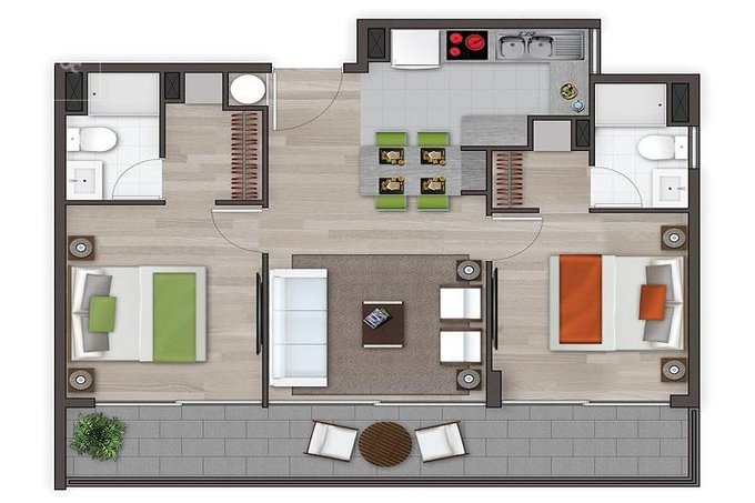 • 2 dormitorios