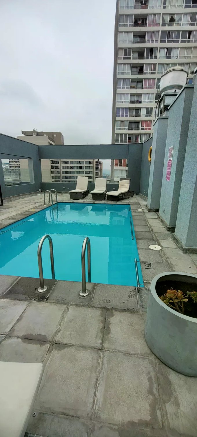 Propiedades Leiva Arrienda hermoso , amplio, luminoso Departamento de 2 habitaciones, dos baños, Cocina americana equipada con encimera , horno eléctrico, logia, balcón con excelente ubicación, ideal para postulantes de la Escuela de la PDI, cerca a metro Ecuador, hospitales, centros comerciales, supermercados, colegios, párvulos, restaurantes, teletón , municipalidad, logia, balcón, thermo eléctrico. Edificio con conserjería 24/7, piscina, quincho, salón de eventos, gimnasio.