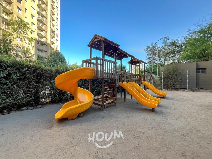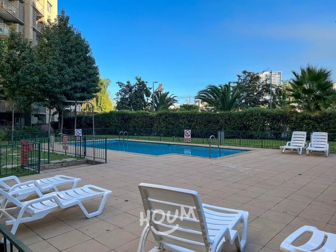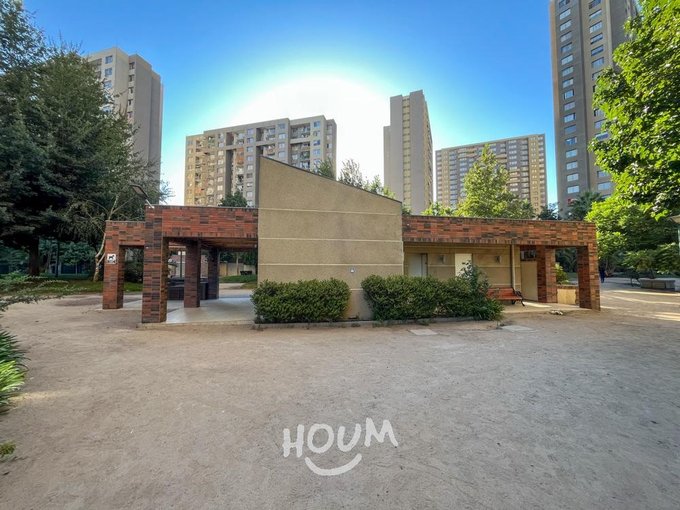 Condominio Barrio Parque con piscina, quinchos, gimnasio, sala de eventos, lavandería, estacionamientos de visita y conserjería 24/7, además de amplias áreas verdes.
