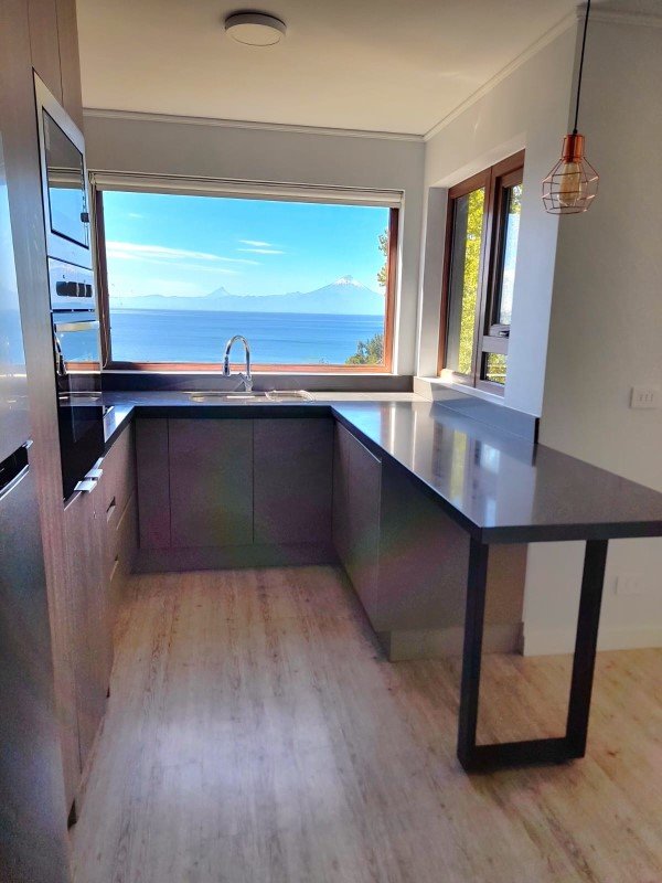 Este hermoso departamento seminuevo está ubicado en altura y Cuenta con una impresionante vista frontal del Lago y los volcanes. Por su orientación oriente posee un Hall de entrada por el cual se accede al área común con un living comedor y cocina integrados, un espacio muy luminoso con salida a terraza por dos puertas. La terraza es amplia y en firma de L, lo que brinda un espacio exterior muy agradable con hermosas vistas a lago, volcán, y bosque.