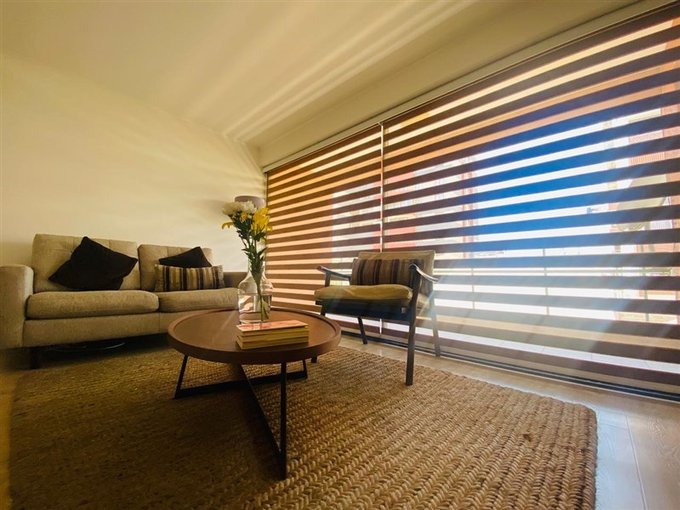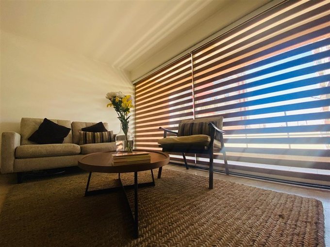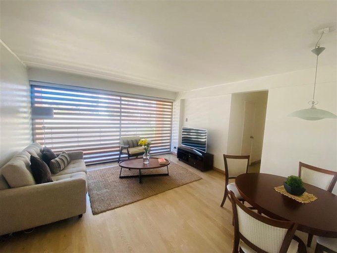 amoblado con un cómodo sofá, mesa de comedor y sillas.
