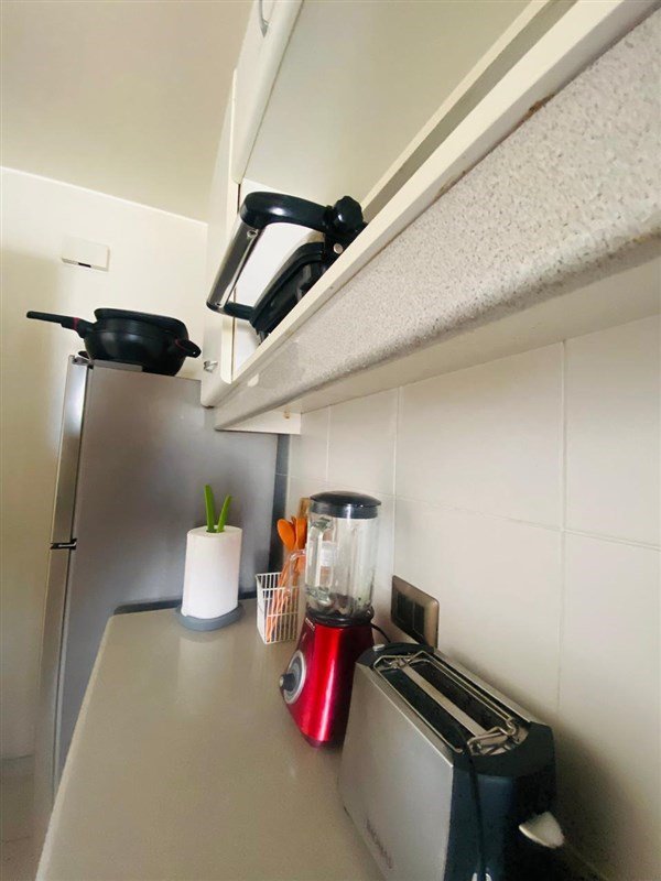 Cocina equipada con electrodomésticos.