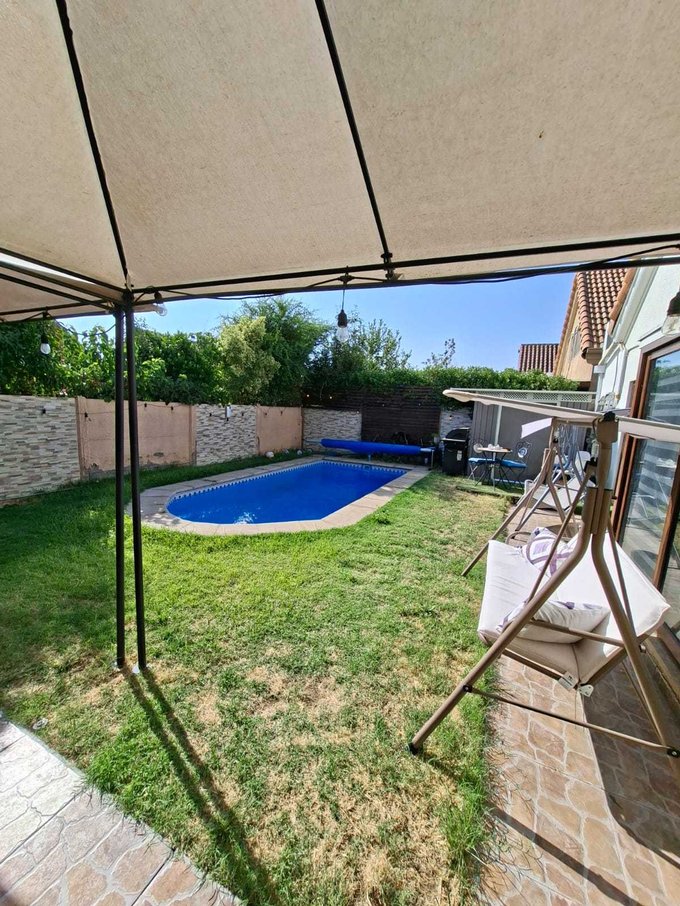 Ubicado en un sector residencial de la comuna, cuenta con tres amplios dormitorios, principal con walking closet y tres elegantes baños uno en suite, diseñados para ofrecer el máximo confort y privacidad a cada miembro de la familia. Los dos estacionamientos, amplio jardin trasero con hermosa piscina temperada, ante jardin, bodega, gatera, sala de estar en el segundo piso, aire aconsicionado en todos los dormitorios, y calefacion en living por sistema de estufa a pellet, todo facilita la vida diaria, garantizando que siempre tendrás un lugar seguro y comodo.