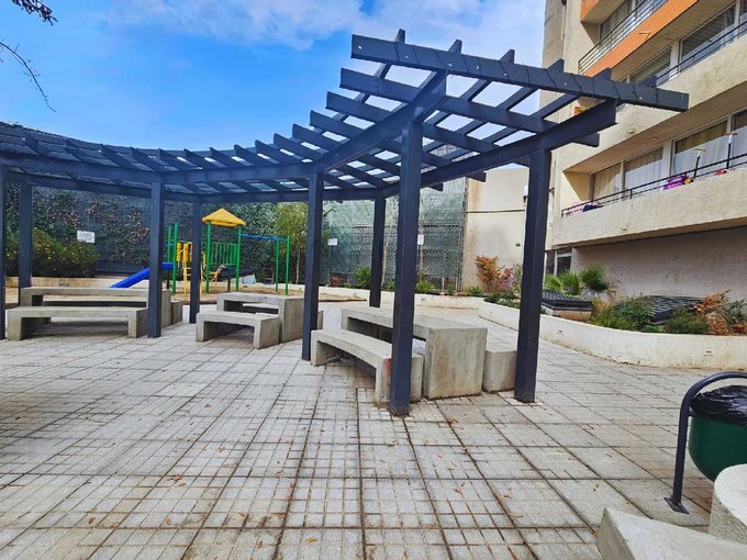 El edificio cuenta con excelentes espacios comunes como: piscina, salón de eventos, quincho, bicicleteros, jardín interno, plaza de juego infantil y lavandería. Además cuenta con buena locomoción y acceso rápido a avenidas principales (Avenida Vicuña Mackenna, Autopista Américo Vespucio). Está ubicado a pasos del metro Bella Vista de la Florida. Cerca de supermercados, mall, gimnasio, plazas, parques, feria, barbería, veterinario, panadería, almacenes con horarios hasta 23hrs, locomoción colectivo afuera, metros, hospitales, clínicas, colegios y estaciones de servicio.