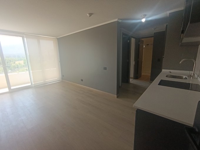Departamento de 3 dormitorios, dos grande y otro pequeño, living comedor con terraza, cocina totalmente amoblada y equipada con refrigerador, horno, cocina encimera y muebles de despensa.