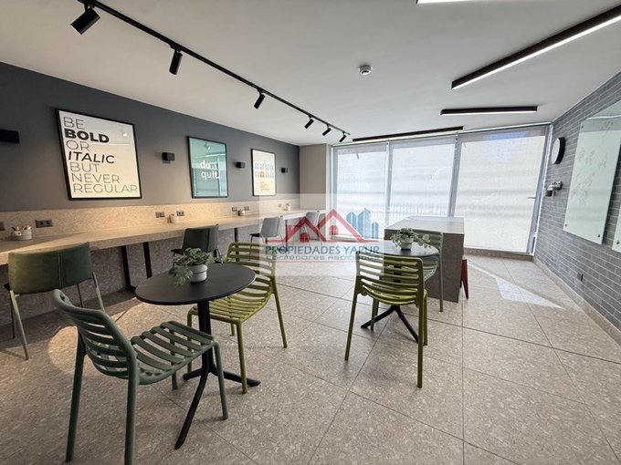 - Edificio con CCTV, piscina, pérgola, quinchos, bar terraza, sala eventos, gimnasio equipado, gran sala de eventos, lavandería, estacionamientos de visitas