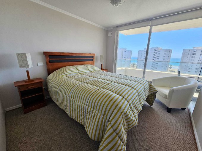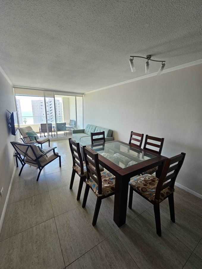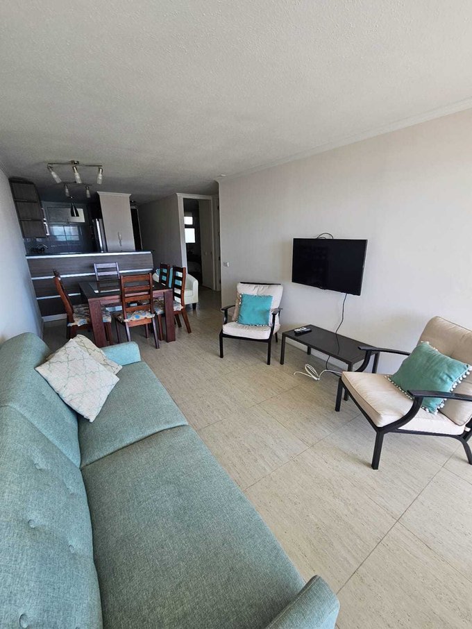 Este elegante apartamento se encuentra en el Condominio Islas del Pacífico , a solo dos calles de la playa en segunda línea, Sector Helipuerto, restaurantes y pubs. Ubicado en el octavo piso con ascensor, cuenta con dos dormitorios alfombrados con amplios closets y dos baños. El espacioso living comedor está completamente amoblado y equipado, y se abre a una generosa terraza con vistas panorámicas. La cocina americana cuenta con todos los electrodomésticos necesarios. Además, el Condominio brinda comodidades de primera clase, incluyendo piscina, quinchos, servicio de conserjería las 24 horas.