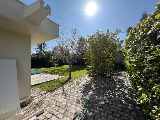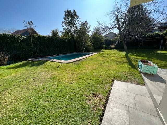 El entorno exterior destaca por áreas verdes consolidadas, árboles y espacios abiertos. El jardín cuenta con una piscina de 4 x 6 metros, ideal para actividades recreativas. Además, la casa admite mascotas, lo que la convierte en una buena alternativa para quienes deseen compartir el espacio con animales domésticos.