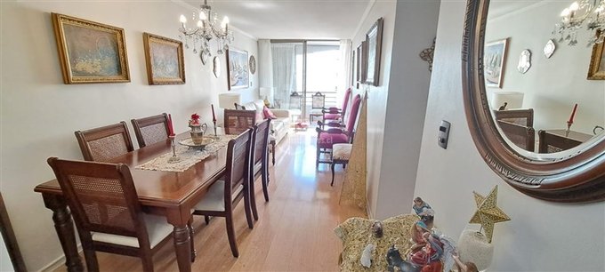 Living comedor juntos, piso flotante, dos dormitorios principal en suite, 2 baños, terraza con acceso desde el living y dormitorios, cocina con loggia incorporada, piso 11 con orientación poniente, vista despejada, luminoso. Estacionamiento y bodega. Gasto Común de $150.000 aprox.