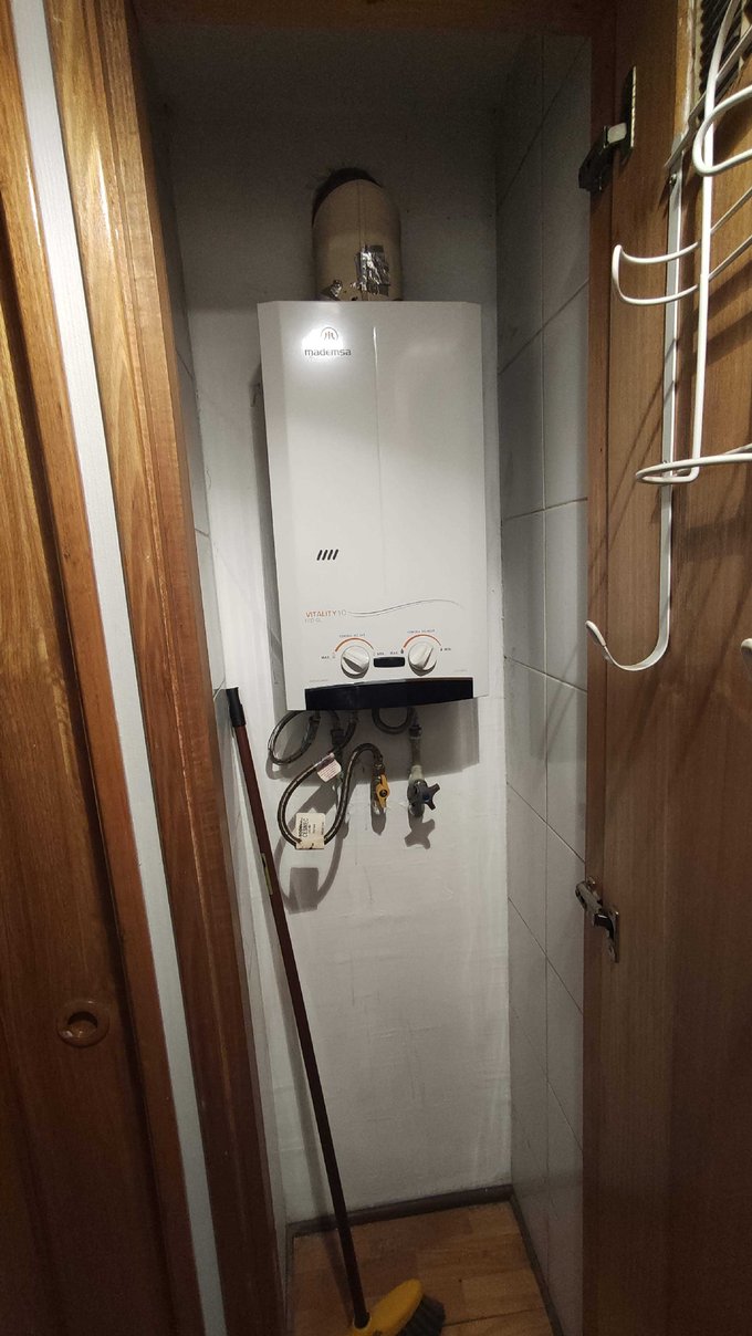 No tiene conexión a lavadora, pero si hay lavandería en el edificio.