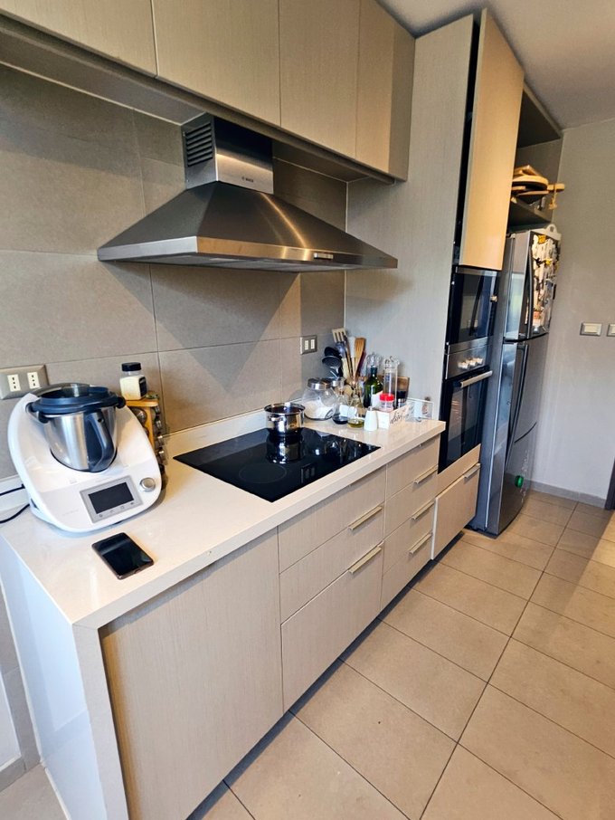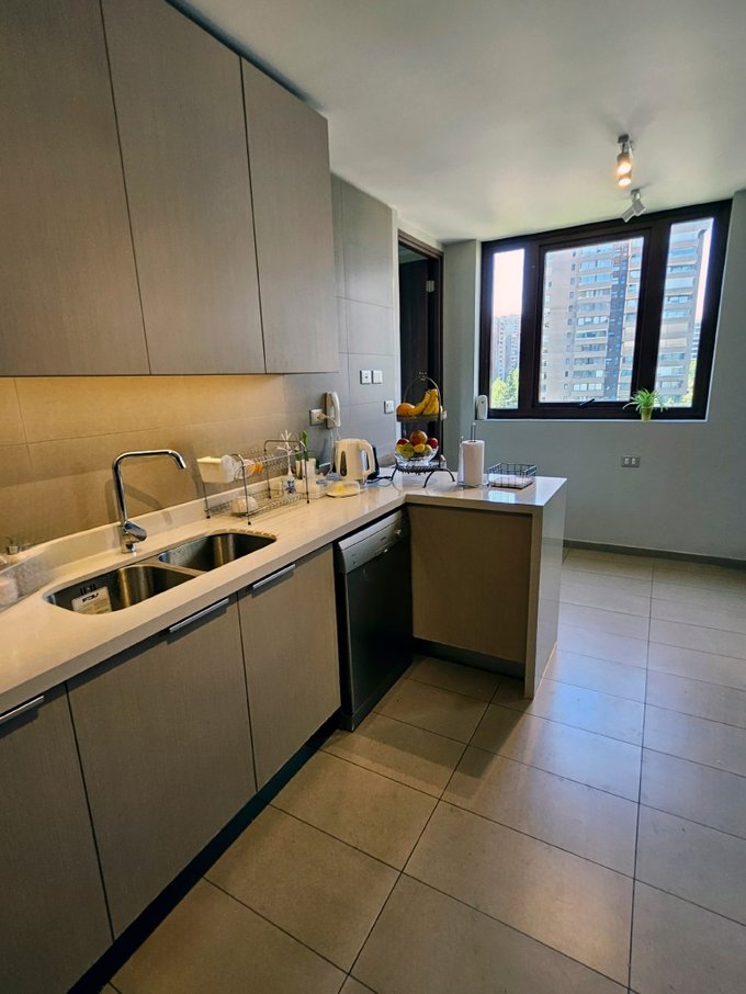 - Cocina cerrada, con cubiertas de cuarzo, artefactos empotrados y salida a logia. Acceso desde comedor o hall de entrada del depto