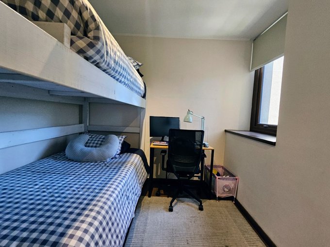 - Sala de estar al final del pasillo de dormitorios, actualmente como otro dormitorio con closet empotrado