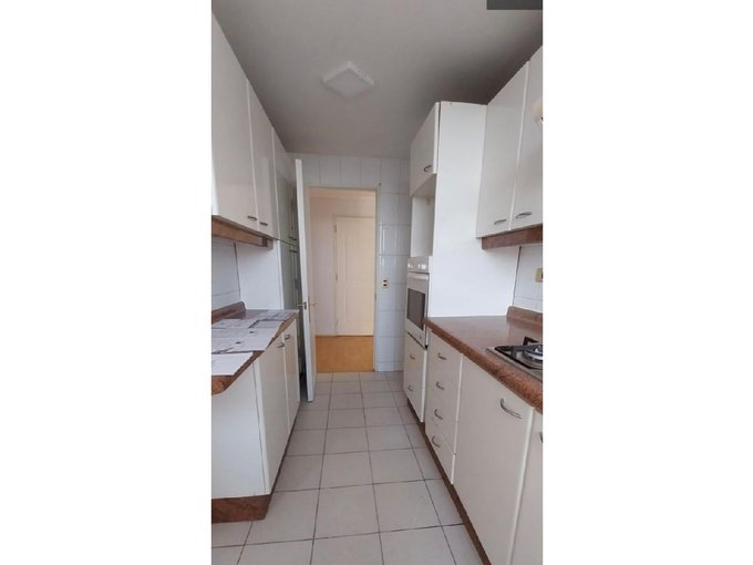 Cocina amoblada con encimera,con salida a logia.