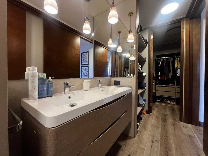 160 sqm, 3 bedrooms (master suite), 3 bathrooms, spacious living-dining with terrace, modern fully equipped kitchen, air conditioning, 2 parking spaces + storage, pet friendly.