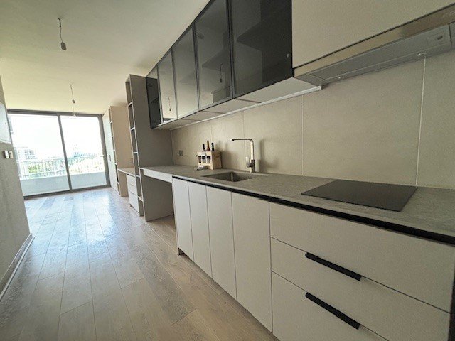 Equipado con lavavajillas, microondas, horno eléctrico , refrigerador con freezer, encimera eléctrica. mesón comedor y suficientes muebles para guardar y almacenar, más logia interna.