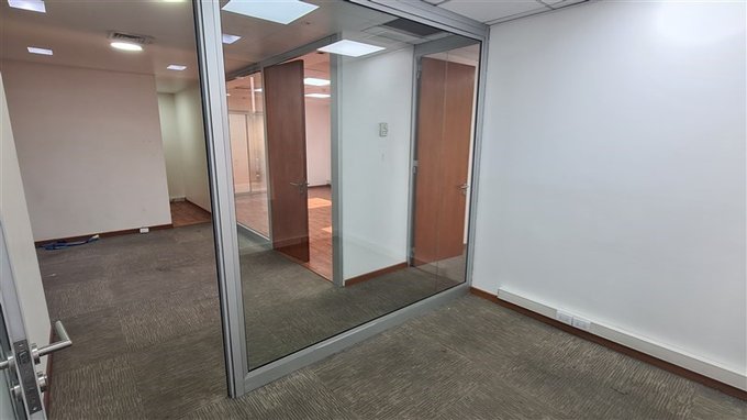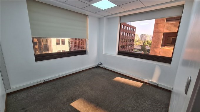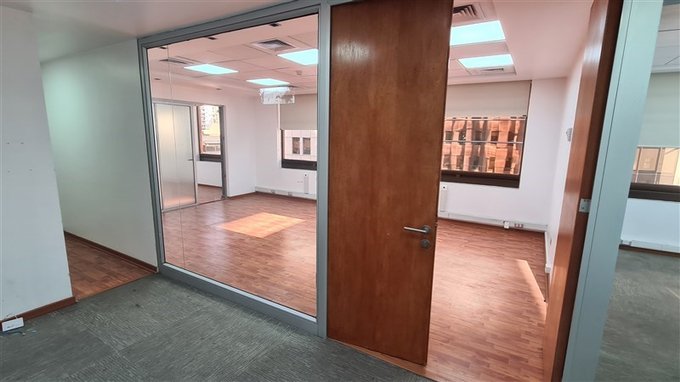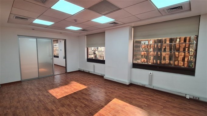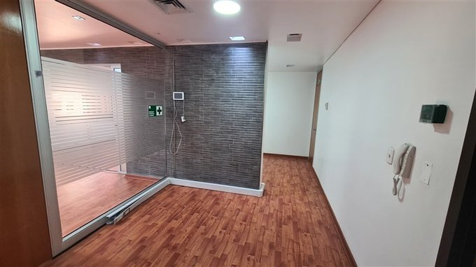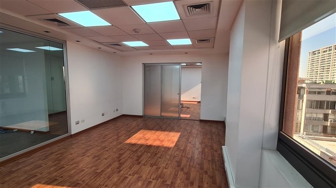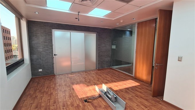 Oficina con práctica distribución, habilitada, con piso flotante y cortinas roller en sus ventanas.