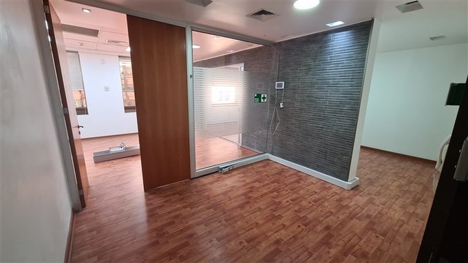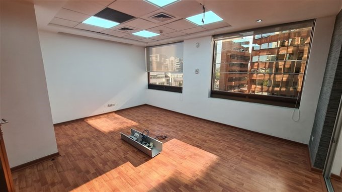 Práctica y funcional oficina totalmente habilitada, 120 m2, Piso 5, calle Cruz del Sur, inmediata a Apoquindo y Metro Escuela Militar.