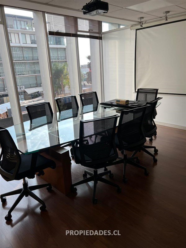 La oficina se encuentra ubicada en un segundo piso y tiene orientación nororiente. Superficie total es de 131 m aprox. Tiene un espacioso hall de entrada y recepción, sala de espera, un pool con 4 estaciones de trabajo, 4 privados muy luminosos, amplia sala de reuniones, kitchenette, 4 baños y una bodega. Dispone de iluminación integral, ventanales de cristal a techo y ventanas termopanel con roller, aire acondicionado frío/calor, piso flotante en oficinas y porcelanato en baños.