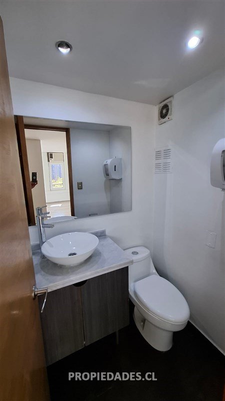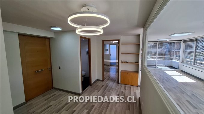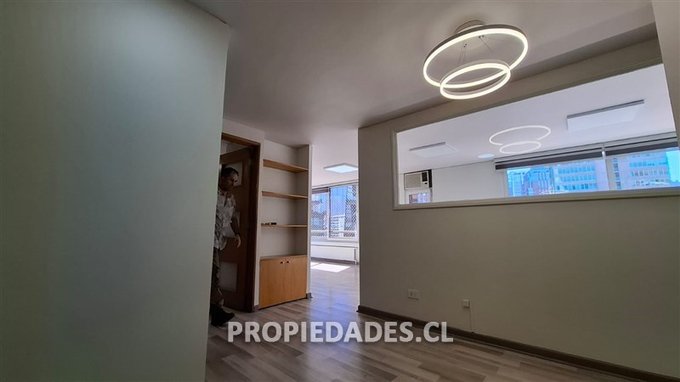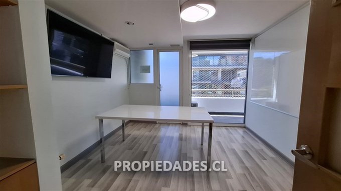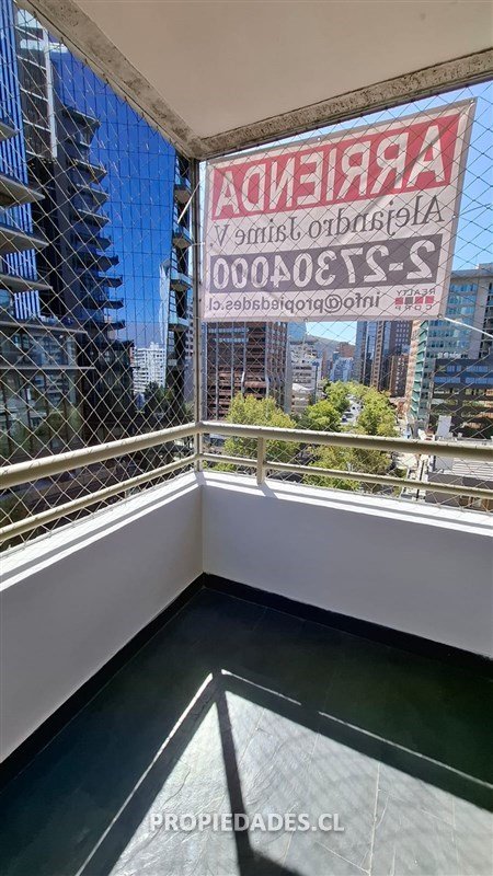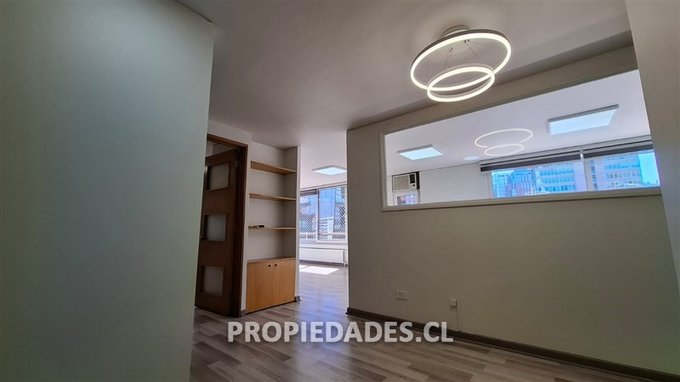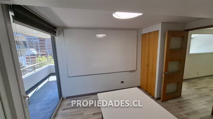 Alejandro Jaime V. & Asociados arrienda oficina remodelada, muy luminosa y con excelentes vistas al barrio El Golf. Propiedad de 70 mt2 más terraza, frente al MUT y que cuenta con hall de entrada o recepción, 2 baños, 1 privado o sala de reuniones, 1 planta abierta con espacio para varios puestos de trabajo y salida a agradable terraza. Espacio para kitchenette, 1 estacionamiento y 1 bodega, ventanas termopanel, 2 aires acondicionados y cortinas roller.