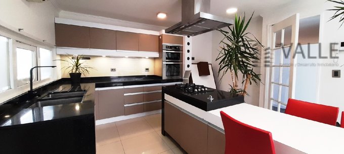 Segundo piso: 4 dormitorios (principal en suite con walk-in closet), sala de estar, home office, cocina con comedor de diario, amplio livingcomedor y loggia.