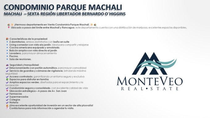 Olvídese de las cuentas sorpresivas a fin de mes. Presentamos este impecable departamento en el exclusivo Condominio Parque Machalí, diseñado estratégicamente para quienes buscan privacidad, seguridad y estilo, con la gran ventaja de tener los Gastos Comunes Incluidos en el valor del arriendo.