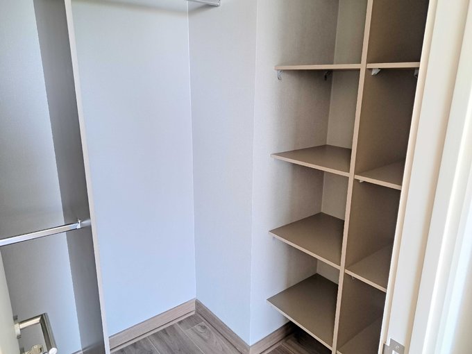 Living/comedor con salida a un balcón, cocina americana con gran mesón tipo isla y comedor, cocina con cubiertas blancas de neolit, equipada con horno eléctrico, encimera de vitrocerámica de 3 platos, y campana, closet con instalación para lavadora de ropas, 2 dormitorios con closet y principal con w. closet, 2 baños completos el principal en suite, con shower y luz natural el segundo con tina y sin ventana dormitorio principal con salida a un balcón.