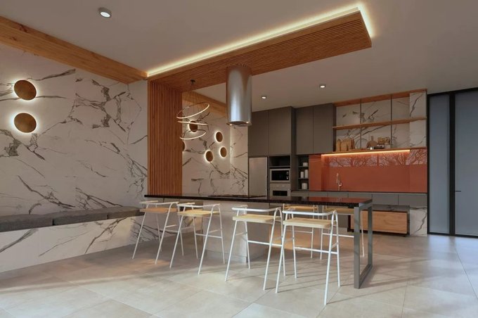Living y comedor tipo desayunador amplio de granito