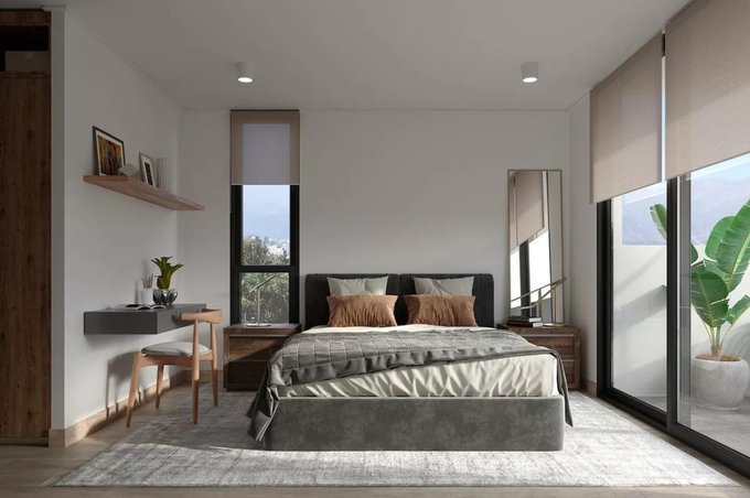 1 dormitorio amplio con ventanales de pared a pared