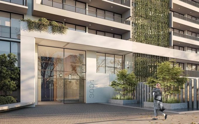 EDIFICIO consta de 18 pisos y 3 subterráneos, en los que se contemplan 262 departamentos, 134 bodegas, 242 estacionamientos y 42 bicicleteros