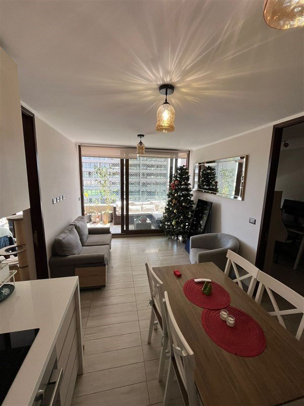 Edificio con sala de cine, estacionamiento de visitas, piscina, áreas verdes, ginmasio, sala de eventos, sala de juegos, conserjes 24 hrs.