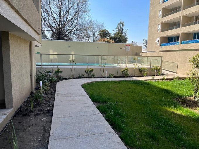 Edificio con piscina, quinchos,gimnasio,lavandería y sala multiuso.