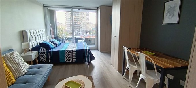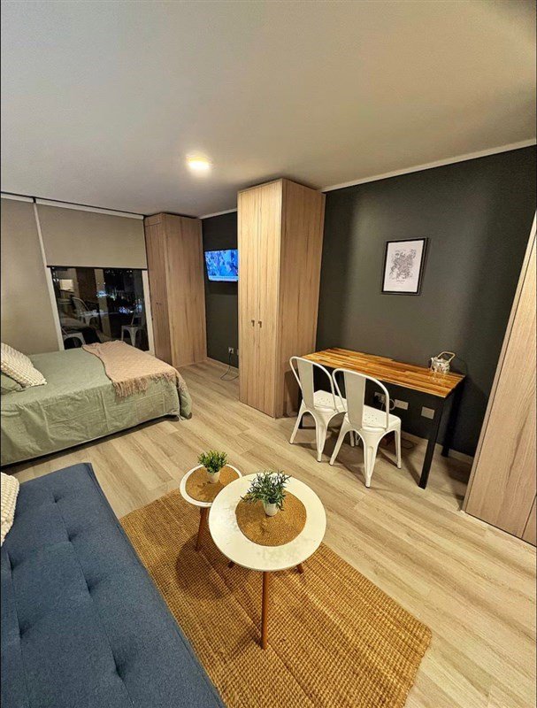 El departamento con vista poniente de 30 MTS, posee cocina equipada, un solo ambiente, 1baño, totalmente amoblado, cuenta además con ventanas Termopanel.