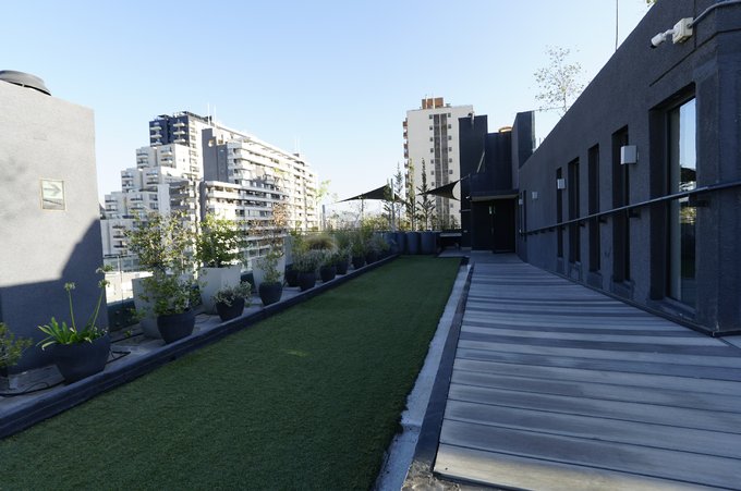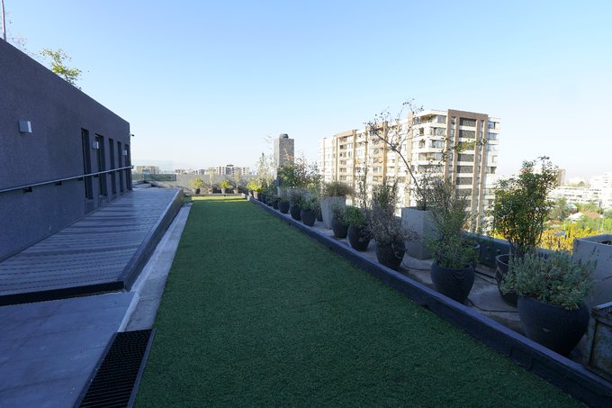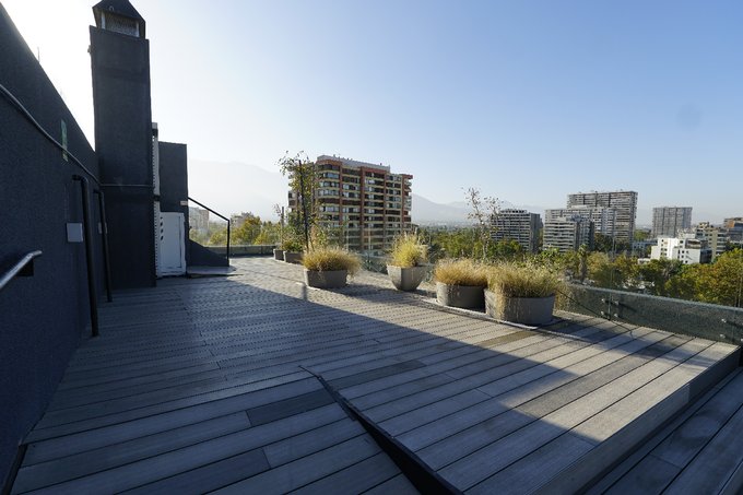 El edificio destaca por sus áreas comunes, entre las que se encuentran salón de eventos, bicicleteros, estacionamiento para visitas, zona de terraza al aire libre, áreas verdes y una piscina en la azotea, que brinda una vista privilegiada de la ciudad.